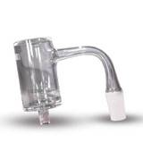 The bottom of the banger sits pretty low into the coil, which lets the coil cover a good part of the banger's outer walls. This setup gives you a larger heated surface for your dabs. Additionally, the longer bucket bottom allows your dabs to travel a greater distance before reaching the neck of the banger. This helps reduce the likelihood of extra reclaim getting into your dab rig.