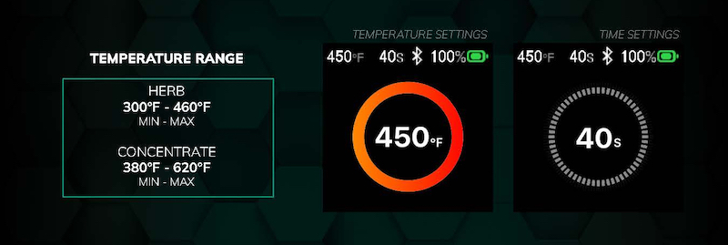 The Carta 2 sadly does not have non integrated batteries like the OG, instead it has a usb-c charging port and wireless charging capabilities (the wireless charger is not included and can be purchased separately). However, it does have passthrough charging so you can plug your Carta 2 in to charge in the middle of a sesh if it's about to die on you and continue as normal. The Carta 2 also features haptic feedback to alert you when your device is fully up to temp and an adjustable sesh mode which can be set as short as 20 seconds. There are 6 preset temperature settings and 6 LED presets which are fully customizable based on preference through the app as well.